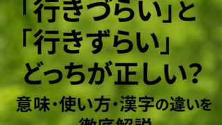暮らし 「行きづらい」と「行きずらい」どっちが正しい?|意味・使い方・漢字の違いを徹底解説 正しいのは「行きづらい」。この記事では「づらい」と「ずらい」の違い、漢字「行き辛い」との関係、使い方や例文をわかりやすく解説します。 暮らし豆知識・雑学