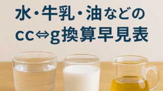 グルメ・レシピ 1ccは何グラム?水・牛乳・油など食材別のcc⇔g換算早見表【誤差の理由も解説】 1ccは何グラム?水・牛乳・油などのcc⇔g換算早見表を掲載。ccとgの違い・換算式・誤差の理由まで詳しく解説。料理初心者でもわかりやすい基礎ガイドです。 グルメ・レシピ暮らし豆知識・雑学